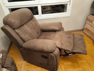 Cómodo sillón reclinable en perfecto estado, con muy poco uso. Su diseño se adapta a cualquier estancia. - ( Entrega En Luanco). - Solo reclina los pies No El Respaldo. - Tapicería de tela. - Color beige neutro.