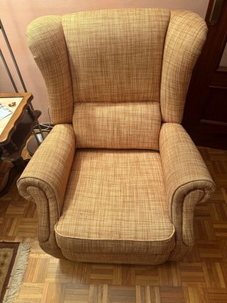 Acogedor Sillón-butaca con un diseño clásico y confortable. Perfecta para añadir un toque de estilo a cualquier rincón. Alto 100 x Ancho 72. Altura hasta el asiento 42cm. Altura hasta reposabrazos 55cm. - Tapicería de tela. - Patas de madera. Disponibilidad para mostrarlo en persona en Gijón. No dejes pasar esta oportunidad única, por mudanza tengo que desocupar todo el contenido del piso antes del 1 de Febrero, y por tanto estoy vendiendo auténticas gangas. No hago envíos, el comprador se encarga de la recogida y/o desmontaje si hiciera falta. ¡Ofertas especiales para compras conjuntas!.