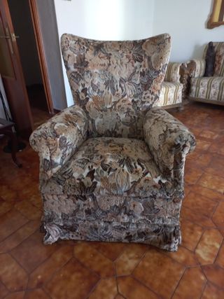 sillon color marron tapizado dd unos años esta en perfectas condiciones en una foto se muestra sin el cojin. Recogida en Jaen - Perfecto para una sala de estar o un dormitorio. - Diseño clásico y atemporal. - Tapizado en excelente estado de hace unos años.