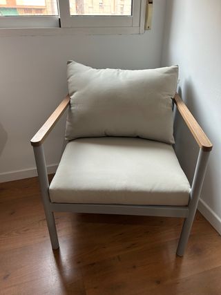 Conjunto de sillones POÄNG de IKEA en color beige. Son cómodos y elegantes. - Estructura de madera. - Tapicería de tela.