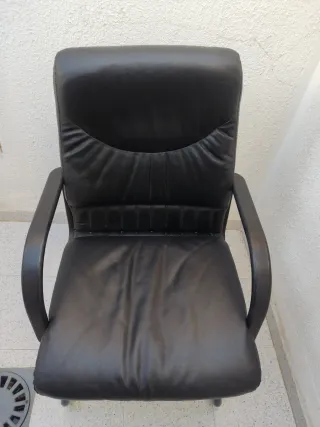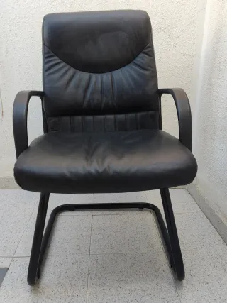 Se venden dos sillones de oficina/despacho en color negro, tapizados en polipiel. Muy cómodos, con reposabrazos y estructura resistente. Ideales para oficina, sala de espera, despacho o consulta. ✔️ En buen estado (uno de los tiene un pequeño roce - se ve en la foto) ✔️ Uso normal, bien cuidados ✔️ Muy cómodos y elegantes Precio por unidad, precio especial por los dos. Se pueden ver sin compromiso.