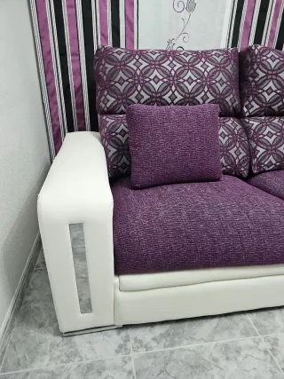 Acogedor sillón para el salón con un diseño moderno. - Estructura de madera. - Tapicería de tela en color morado. uno en perfecto estado, el otro habría que tapizar un agujerito pequeño de ahi el precio se vende la pareja por 40€