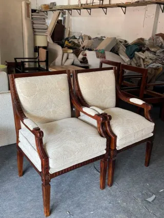 Tapizamos todo tipo de muebles 🛋 TRABAJAMOS POR MADRID Y TOLEDO 📍 Atendemos WhatsApp 614318747 ☎️ - Recogemos y entregamos a domicilio. - Damos presupuesto sin compromiso. - Telas antimanchas y Polipiel. - Ponemos espumas nuevas. - Arreglamos maderas rotas. - Encolamos maderas en mal estado. - Con más de 35 años de experiencia. - Tapiceros artesanos profesionales.