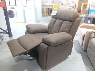 Sillón reclinable con funciones de masaje y calor. - Tapicería de tela y ante. - Color marrón y gris. El único pequeño defecto es el el reposapiés que está un poco manchado, por todo lo demás no tiene mucho uso y está bien conservado