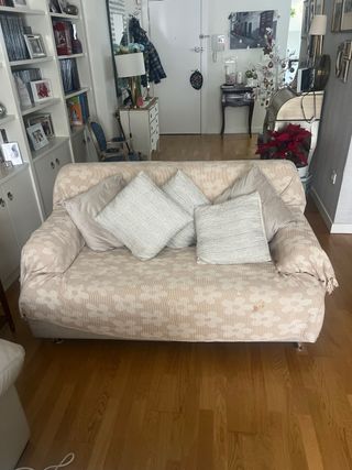 Sofá de tela beige, funda con flores no incluida