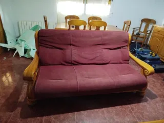 Sofá y 2 sillones de madera