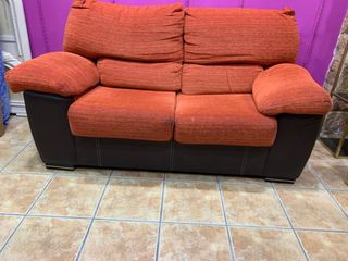 2 Sofás 3+2 plazas naranja y marrón