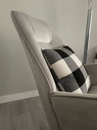 Mecedora gris de terciopelo y madera