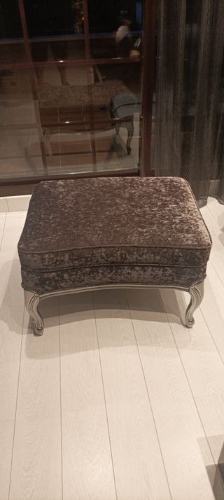 Elegante divan cón 2 sillones y reposapié o puff con un acabado suave y lujoso. - Tapicería de terciopelo.lavable - Patas madera con diseño curvo.
