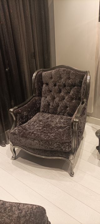 Sillón de terciopelo gris