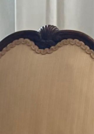 Elegante sillón de madera con un diseño clásico. - Tapicería en tela color beige. - Estructura de madera con detalles tallados. - Respaldo alto y brazos curvos. súper cómodo y bien cuidado