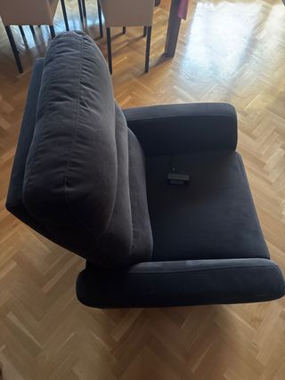 Preciosa butaca reclinable, ideal para relajarse. También es fantástica para personas con difícil movilidad pues se abren los brazos para facilitar su entrada. Apenas ha tenido uso. Se desenfundar para poder lavarlo Con factura de compra Se reclina con mando hasta posición horizontal Muy moderno y discreto a la vez. - Diseño elegante y cómodo. - Tapizado polipiel de la mejor calidad negro y tapiceria superior en tela gris . Totalmente desmontable No hago envíos y pago al contado