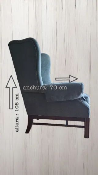 Se venden dos sillones orejeros de tela en color verde. Son cómodos y elegantes, perfectos para cualquier salón. - Medidas: 106 cm de altura y 70 cm de anchura.