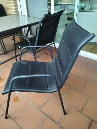 Sillas de terraza metálicas y de tela negra