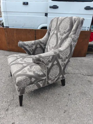 Sillón de diseño moderno y confortable, con muy poco uso. - Estructura de madera curvada. - Tapicería de tela suave.