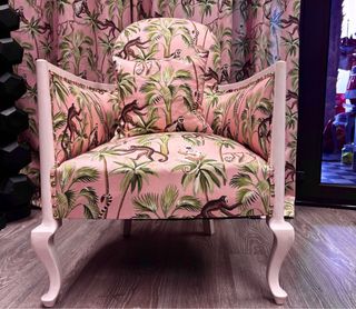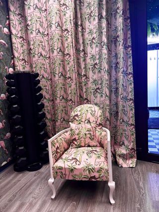 Pequeño sillón a juego con las cortinas Un pequeño ambiente de jungla con este conjunto