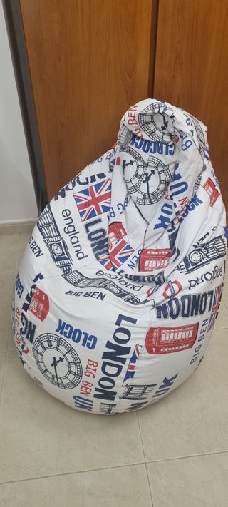 Cómodo puff con estampado de Londres. Ideal para relajarse. - Diseño con imágenes icónicas de Londres. - Perfecto para cualquier habitación.