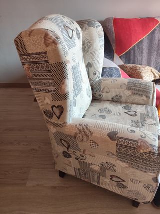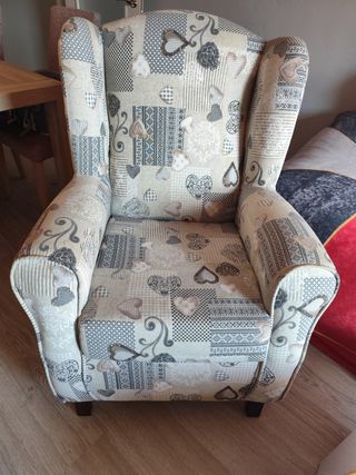 Sillón orejero de estilo clásico. Respaldo alto, inclinado y orejero para mejorar el descanso. Reposabrazos curvos para acompañar la postura en descanso. Asiento acolchado de espuma, muy cómodo. Tapizado de tela de cuadros. Se inclina al reclinarse en el asiento. Medidas: largo 70 cm, profundidad 85/130 cm, alto 96 cm. Disponible en: Ctra. Vic 213, MANRESA - Barcelona, 08243. Y POR UN COSTE ADICIONAL ¡TE LO LLEVAMOS A CASA!