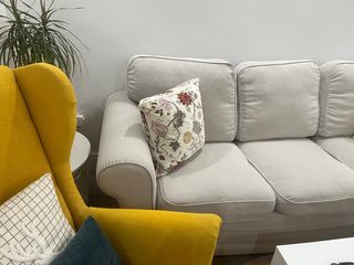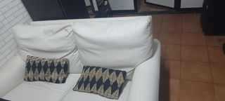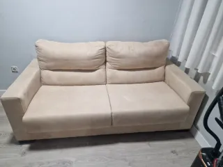 Sofás de tela en tonos grises. Bien acolchado. Se lavarán todas las fundas antes de entregarlo. El único desperfecto es que hay que arreglarle una cremallera. Los vendo juntos. Precio negociable.