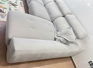 Sofá chaise longue en perfecto estado, con solo 3 meses de uso. Su diseño moderno y cómodo lo hace ideal para cualquier salón. - Medidas: 3.20 metros de largo. - Tapicería de tela. - Incluye cojines decorativos.