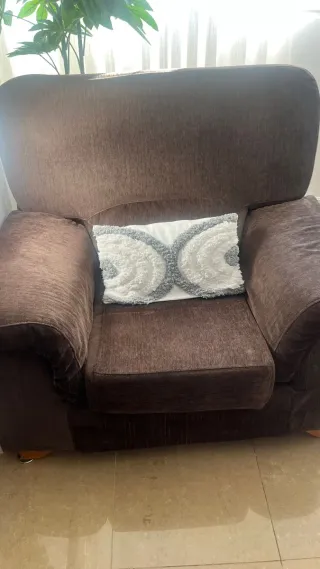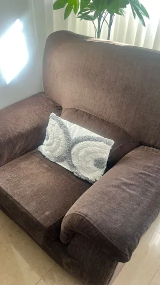 Cómodo sillón de tela, perfecto para tu salón. Su diseño amplio ofrece gran confort. - Color marrón. - Acolchado Muy amplio. Posibilidad de otro a juego.