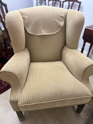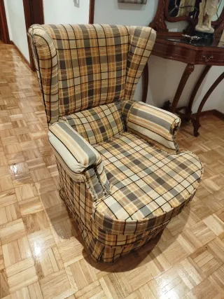 Sillón orejero tapizado madera maciza