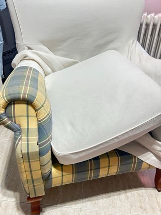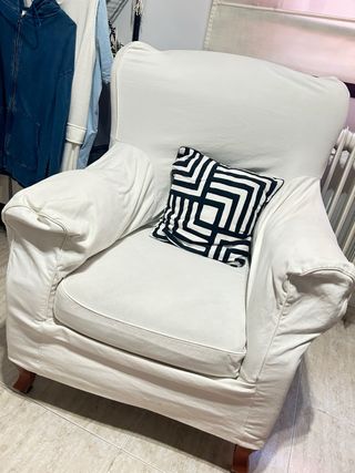Sillón de tela con funda blanca