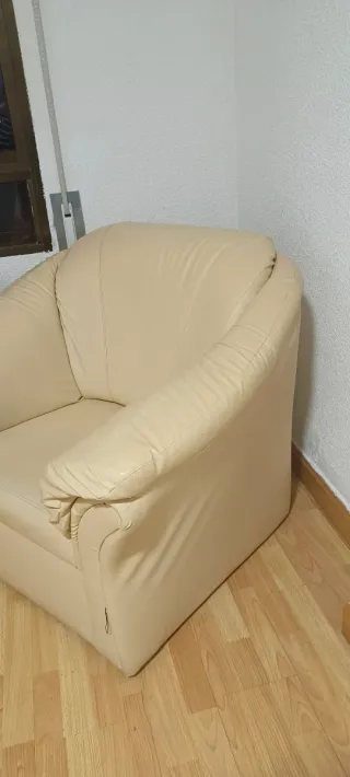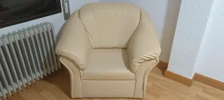 Cómodo sillón de polipiel en color beige. Se encuentra en buen estado. - Diseño moderno y elegante. - Acolchado para mayor confort.