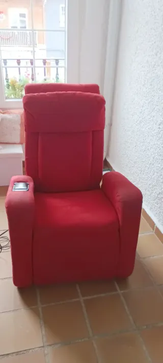 Sillon electrico de tela rojo reclinable En perfecto estado Con funcion de masaje desde la espalda hasta la cabeza Muy poco uso Se vende por liberar espacio Medidas: Largo estirado ➡️ 1'60 m Largo ➡️ 0'80 m Ancho ➡️ 0'80 m Alto ➡️ 1'10 m Se puede recoger en Arroyomolinos