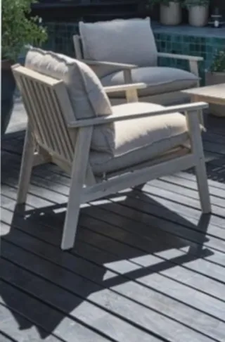 Sillón de madera modelo SYLTHOLM, perfecto para tu terraza o jardín. Su diseño moderno y materiales de calidad lo hacen ideal para disfrutar del aire libre. - Estructura robusta de madera. - Cojines cómodos y resistentes. - Ideal para balcón o terraza.