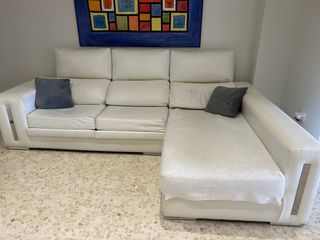 Conjunto de salón compuesto por un sofá y dos sillones. El sofá grande ha tenido poco uso, los sillones un poco más pero no están en mal estado como se puede ver en las imágenes. Medidas: sofá 2.10 x 1.05 cm Sillones. 95 x 1.05 cm - Tapicería de piel. - Color beige.
