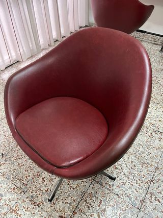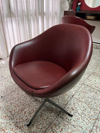 Sillón giratorio, ideal para salones de peluquería o barbería o para una casa o piso - Base de metal plateado. - Tapizado en cuero granate - Asiento cómodo y ergonómico. Son 3 sillones y el precio es por cada uno de ellos. Se venden juntos o separados