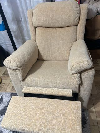 Se venden dos sillones relax en tela color beige. Uno de ellos no funciona. - Diseño moderno y confortable. - Tapicería suave al tacto.
