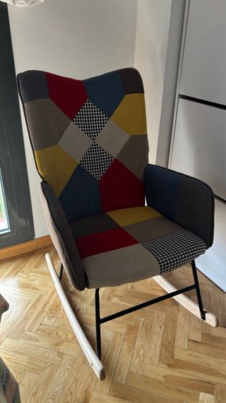 Silla*Sillón mecedora es muy comoda , muy nueva, tapizado perfecto y Tiene una doble funda acolchada protectora y lavable,madera roble, muy cómoda y relajante. Ideal para personas mayores. Costo 250 € ⛔️NÓ ENVÍO
