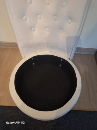 Silla con un diseño moderno y elegante, perfecta para cualquier hogar. - Estructura metálica brillante. - Asiento y respaldo en color beige. - Detalle de estrella roja en el asiento. PRECIO NEGOCIABLE