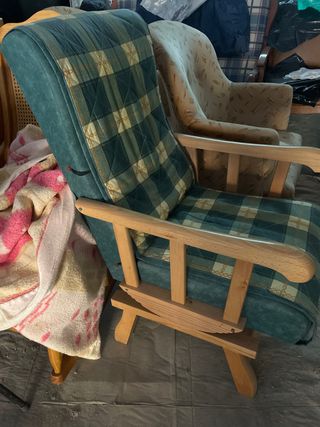 Sillón Mecedora Verde Tela y Madera