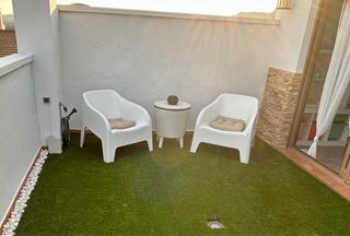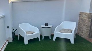 Mesa redonda cristal y 2 sillones terraza