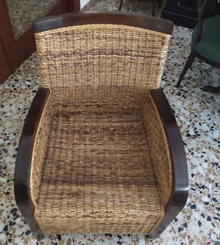 Sillón mimbre y madera