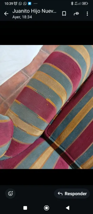 Sofá 3 plazas 210cm ancho, 90cm alto, 90cm fondo. Primeras calidades: armazón madera, asientos poliuretano denso, tela chenilla antimanchas desenfindable y lavable. 12 años y en magnífico estado. No incluye cojines ni tela cabecera. SEVILLA CAPITAL. #sofá #sofatresplazas #sofa