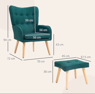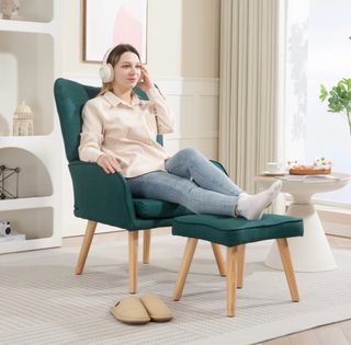 Sillón de tela verde con reposapiés