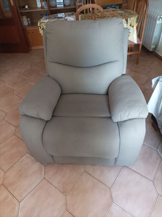 Sillón relax reclinable en color beige, de tela. Tiene un bolsillo lateral muy práctico. Se encuentra en buen estado. - Mecanismo reclinable. - Bolsillo lateral para mandos o accesorios.