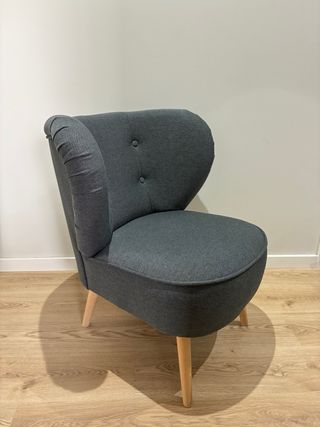 Sillón moderno de Ikea, modelo Nolmyra. En buen estado. Tiene un mancha pequeña pero apenas se ve. - Diseño ligero y ergonómico. - Patas de madera clara.