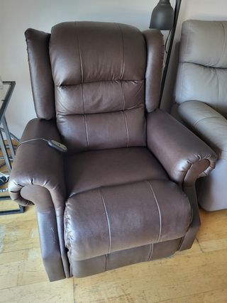 Cómodo sillón reclinable. A recoger en Cerdanyola del Vallés. - Tapicería estilo piel. - Color marrón. - Posición regulable con el mando. - Ideal para personas mayores.