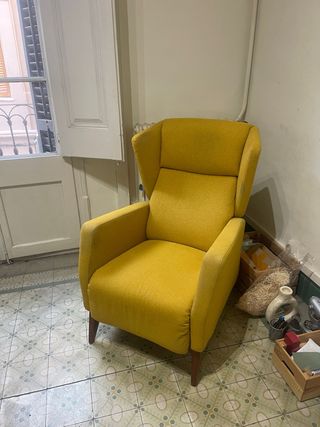 Cómodo sillón de tela con un diseño clásico y elegante. Perfecto para crear un rincón acogedor en tu hogar. Está en perfectas condiciones pero necesita una limpieza, o una funda, por eso el precio es negociable. Puedes verlo sin compromiso Precio negociable - Tapicería de tela. - Color beige neutro. - Patas de madera.