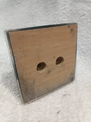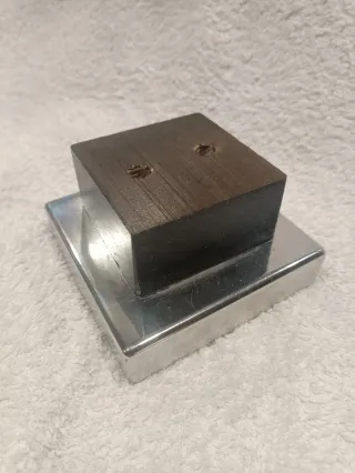 Conjunto de cuatro patas para sillón, combinando madera y acero inoxidable. - Base de madera oscura. - Piezas metálicas plateadas.