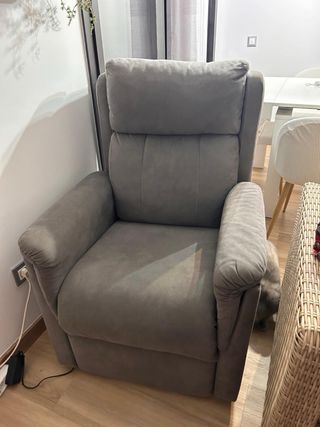 Sillón reclinable con motor para mayor comodidad. - Tapizado en tela. - Color gris neutro. - Tambien tiene la modalidad de darle a un boton y eleva el sillon hacia delante pars poder levantarse mejor sin hacer esfuerzo.