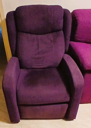 Cómodo sillón reclinable con un acabado suave. - Tapicería de tela. - Color morado. Escuchamos ofertas. Entrego en Salamanca, zona del Rollo. Disponible hasta el 2 de febrero.
