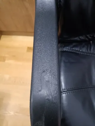 Sillón de oficina con un diseño moderno y funcional. -ESTÀ EN VARIOS SITIOS RAJADO pero se puede poner una funda. Un apoyabrazos también desgastado - Tapizado en polipiel. - Base con ruedas para fácil movilidad. - Respaldo ergonómico. NO HAGO ENVÍOS