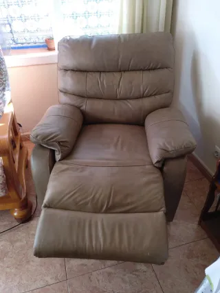 Cómodo sillón relax de piel marrón. Está en buen estado, aunque presenta algunas señales de uso. - Perfecto para relajarse. - Diseño clásico y elegante. - Ideal para cualquier espacio.