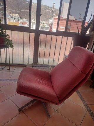 Acogedor sillón individual con un diseño moderno y confortable. - Tapicería de pana suave al tacto. - Base giratoria de metal. El color está desgastado y tiene un roto en la base